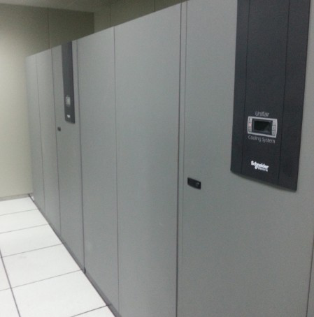 機房內部保持恒溫恒濕,采用兩臺施耐德精密工業空調,雙壓縮機備份。
